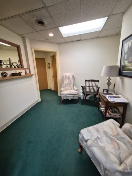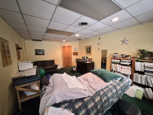 This suite provides a small waiting area with a reception, 2 nice-sized offices, and a back filing area with a sink.